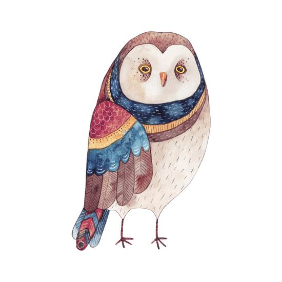Watercolor Funny Kids Illustration With Owl Hand Drawn Animal