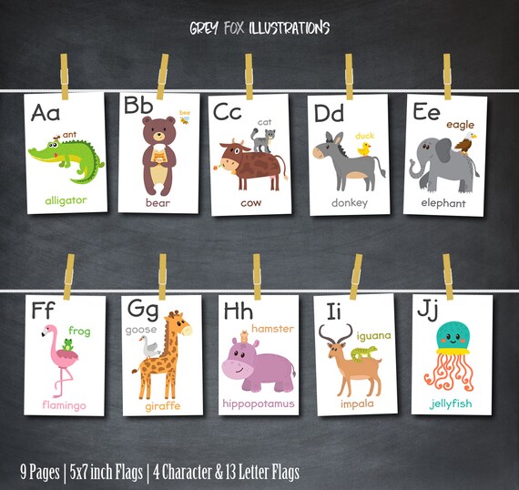 Alphabet Flash Cards Animal Alphabet Card Set Instant Etsy