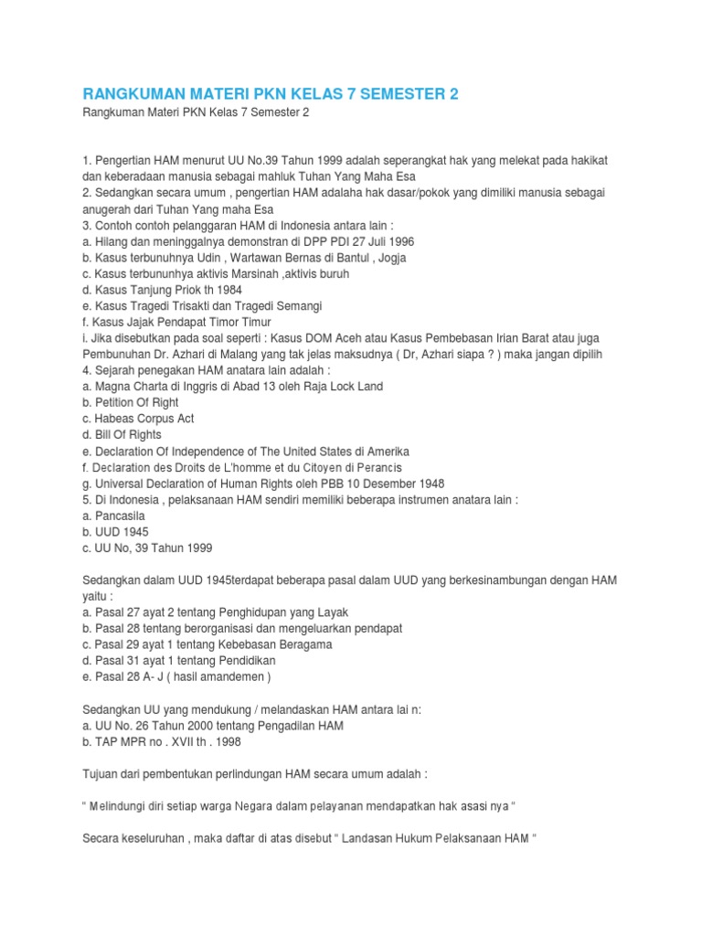Rangkuman Materi Pkn Kelas 7 Semester 2