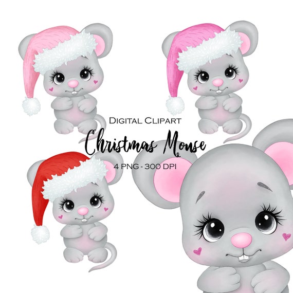 Watercolor Cute Winter Christmas Mouse Png Clipart Digital Etsy
