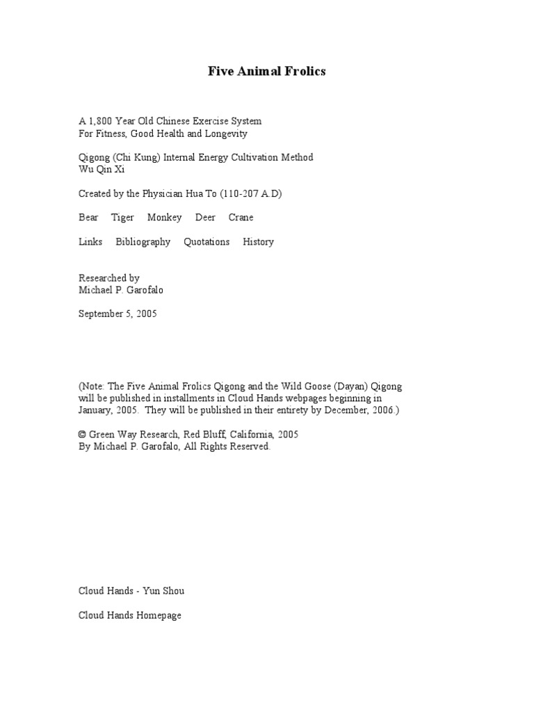 Five Animal Frolics Wu Qin Xi Qigong Bibliography Lessons
