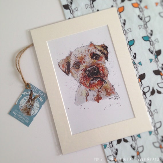 Animal Print Border Terrier Dog Painting Pet Animal Etsy