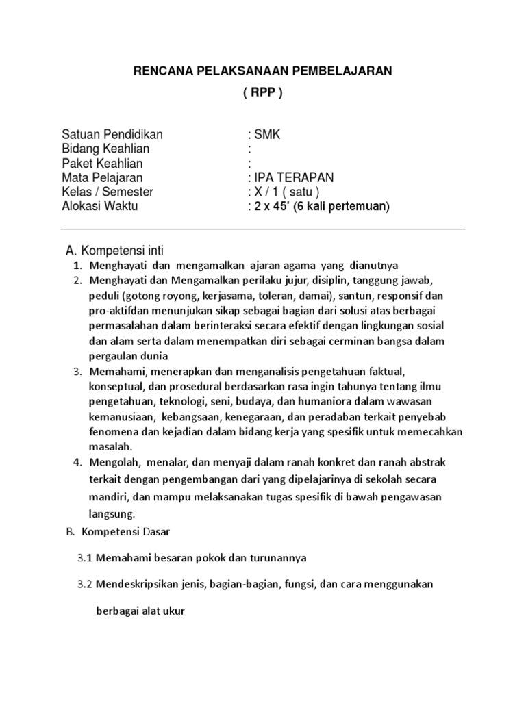 Kompetensi Inti Dan Kompetensi Dasar Kikd Ipa Terapan Revisi
