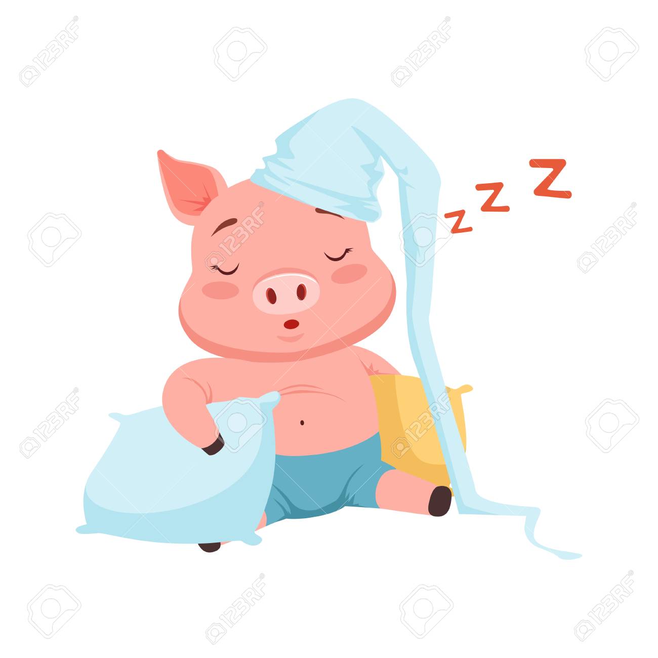 Cute Pig In Hat Sleeping Funny Cartoon Animal Vector Illustration