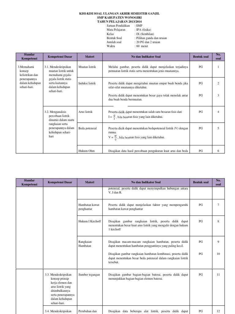 9 Kisi Kisi Ipa Fisika Kls 9 Uas Smt Ganjil Mkks Wng 2013 2014