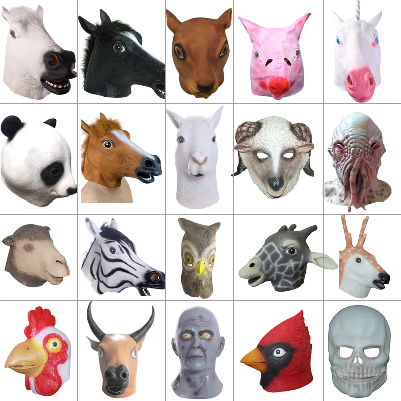 Creepy Horse Lion Octopus Hippo Rubber Animal Mask Latex Party