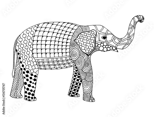 Elephant Doodle Zentangle Illustration On Simple White Background