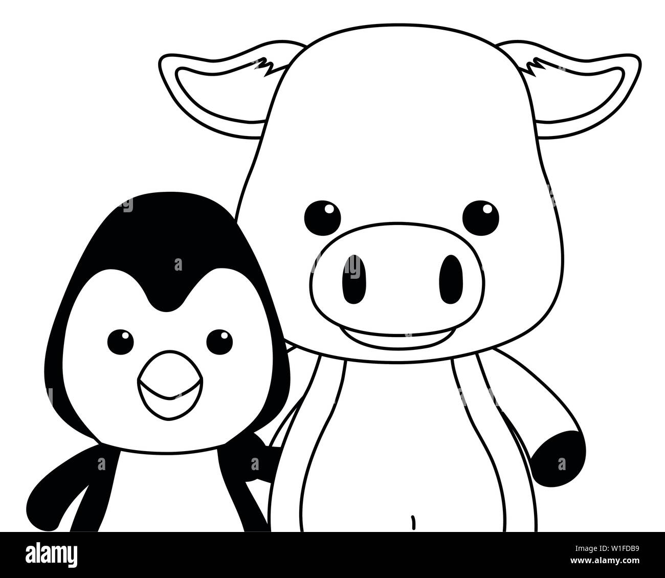 Penguin And Pig Cartoon Design Animal Cute Zoo Life Nature And