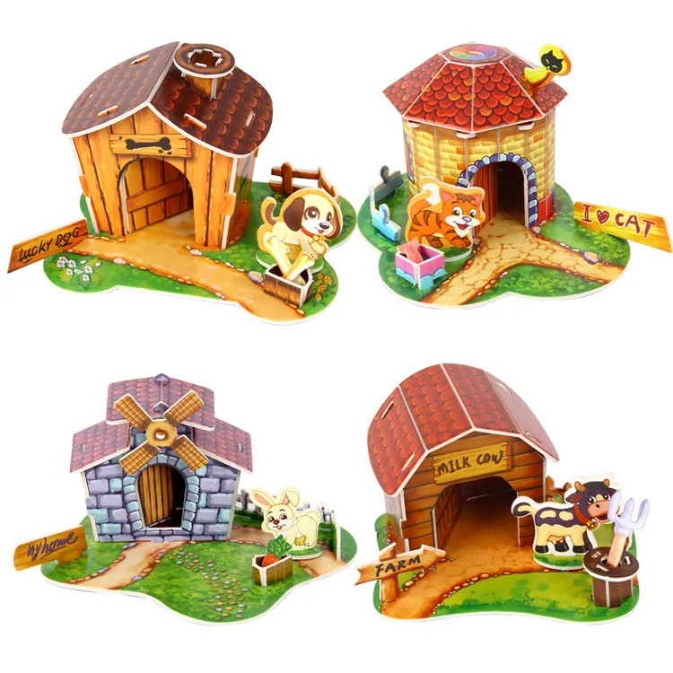 3d Paper Puzzle Handmade Assembled Cartoon Pet Animal House Model