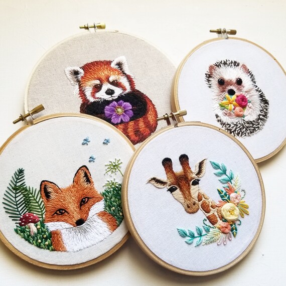 Nursery Animal Hand Embroidery Patterns Cute Fox Cross Stitch Etsy