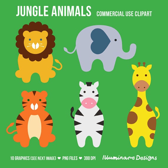 Cute Jungle Animal Clipart Cute Safari Clipart Jungle Etsy