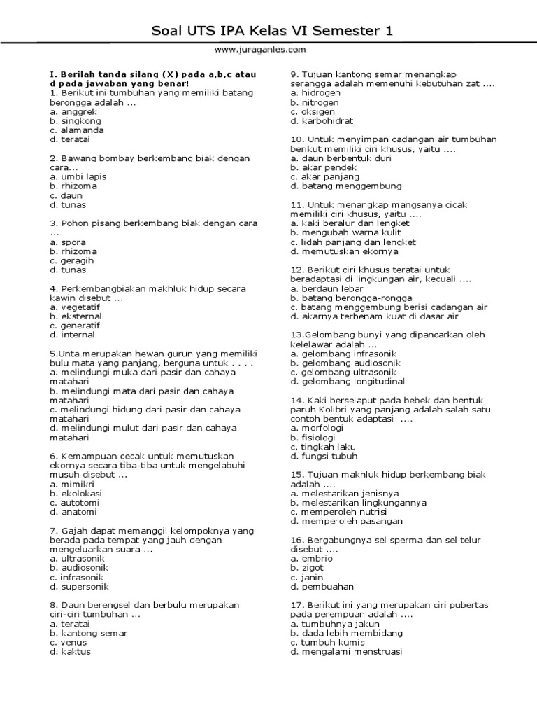 Soal Uts Ipa Kelas 6 Semester 1