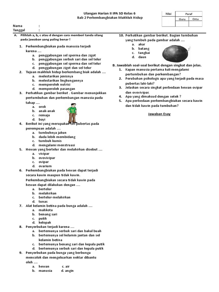 Soal Ulangan Harian Ipa Kelas 6 Bab 2 Perkembangbiakan Makhluk Hidup