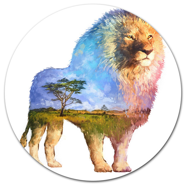Lion Double Exposure Illustration Animal Disc Metal Artwork Print