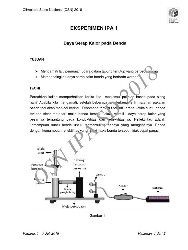 Soal Osn Ipa Sd 2018 Eksperimen 1 Pdf